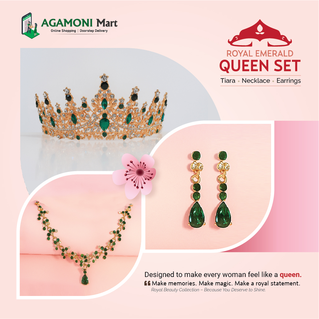 Be the first to review “Royal Emerald Queen Set – Three-piece Bridal Jewellery Suit” Cancel reply